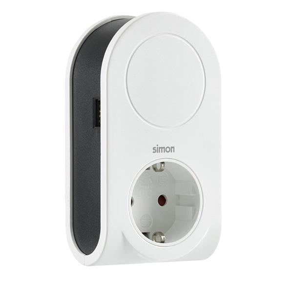 Cable enrollable. 1 puerto USB-A, 1 toma.